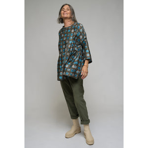 A fine micro check linen gives yet another look to the faithful Matilda. Cut from just one piece of linen with a longer sleeve providing protection from the summer...