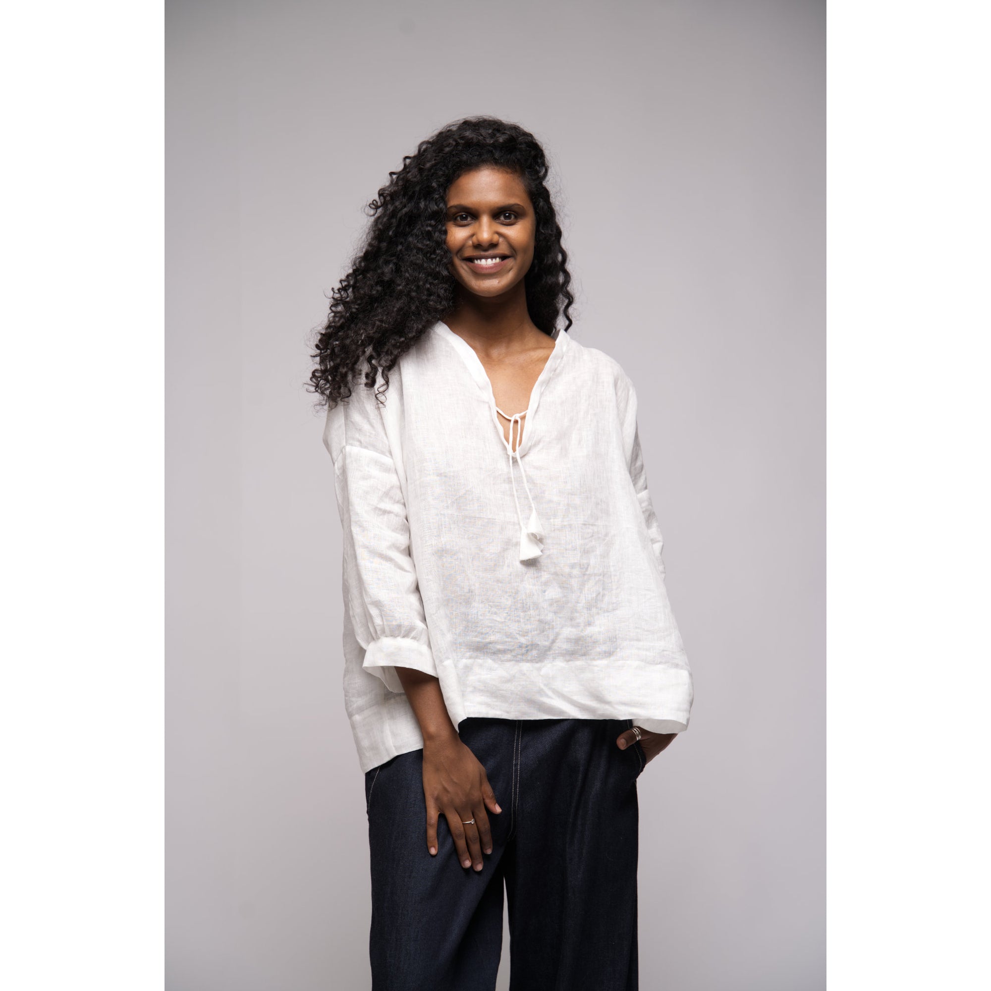 The Jane top features an oversize silhouette in our fine linen shirting, gracefully draping and softly gathering at the cuff creating a sweet detail. Pure Linen Colour:...