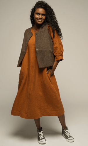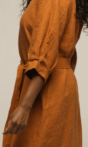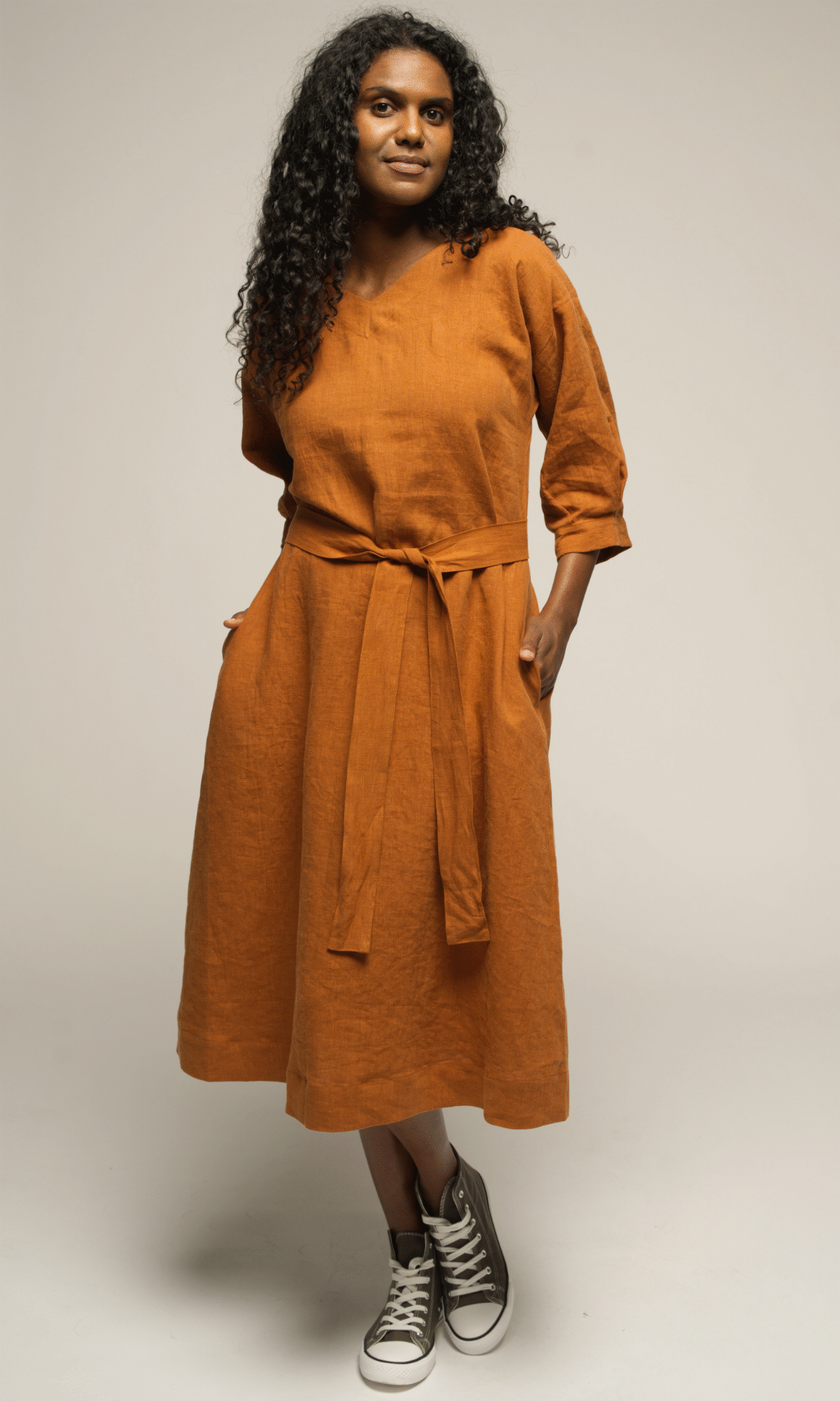 The Audra Dress introduces a fresh new silhouette, made from a lovely vintage linen.